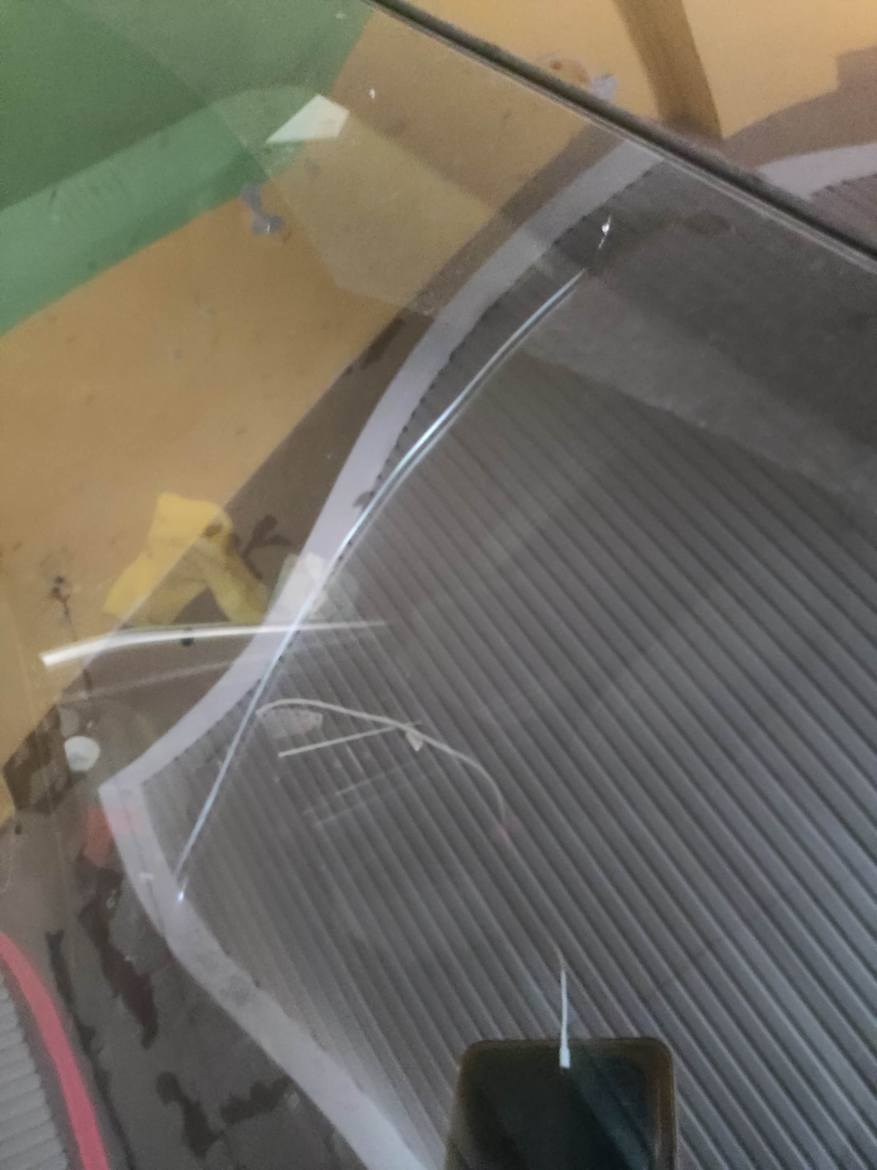 有反光,看不清哪里是裂的。但是仔细看就中间裂了一道把。你可以做个修复试试。如果换前挡你也去S店换就可以了。但是具体多钱你还是问问吧,因为前挡换的人不多