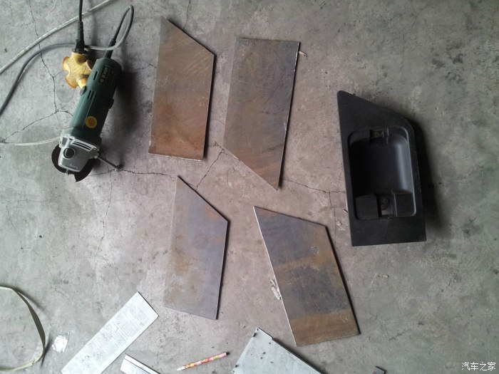 前日门把手被撬,丢了两千元的工具。买新的装上,发现质量更差,只好自己动手做铁的。之前和技工探讨过,原本想用不锈钢做,但是苦于没工具,所以买了3MM厚的铁板做。话不多说,上图!!喷了漆,装车效果还不错哦!呵呵!!费劲!太耗时间了,三天做了两个前门的,反正过年没事,慢慢做呗!