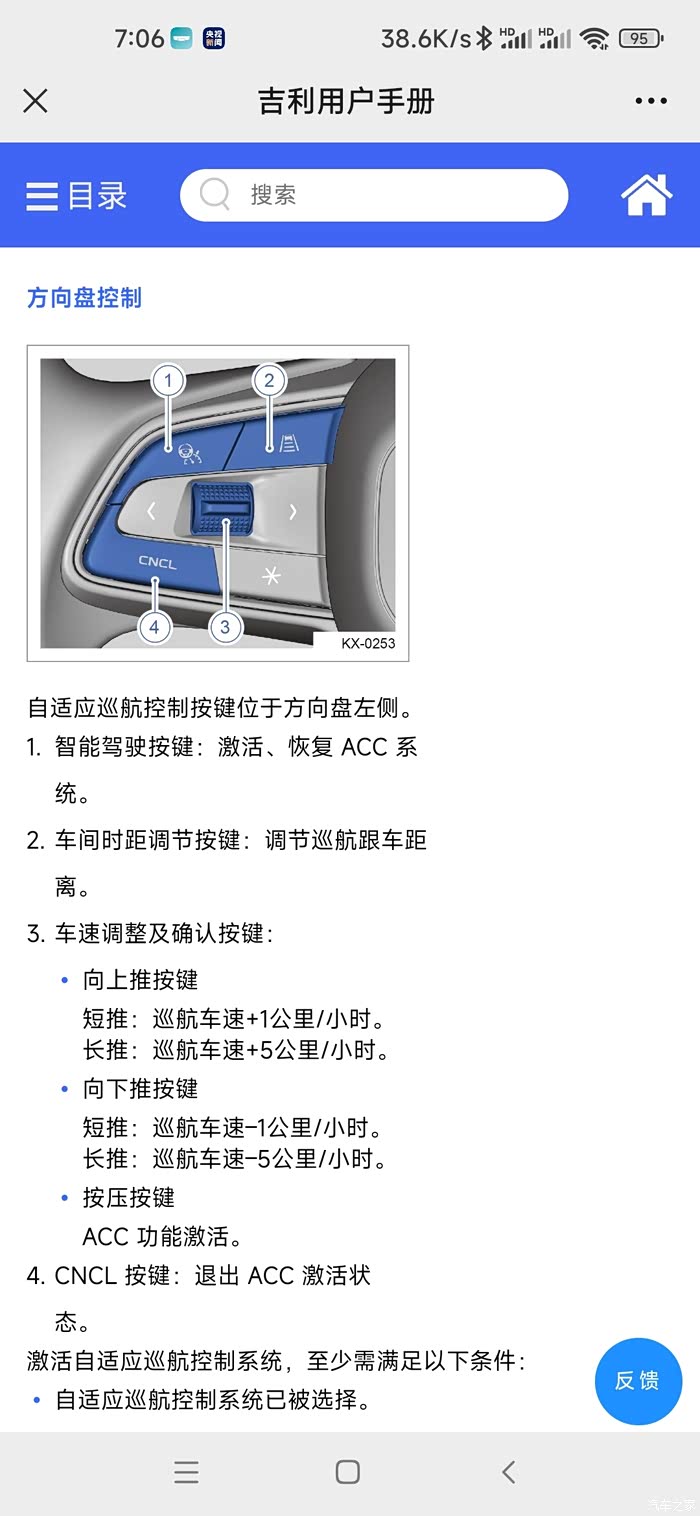 可以看看手册,吉利服务微信公众号里有电子手册,虽然写的不好,但还是值得参考。下面是一个手册截屏。主要是左侧方向盘区域的几个控制按钮,主要启动按钮在左上角。