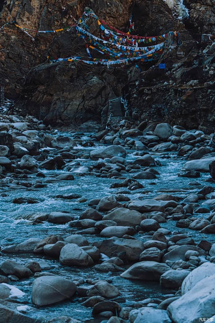 而旋转到塔的另一边却又另有一番风景,河水的奔腾流淌日夜不息,阴面的风比阳面强很多,吹得身体有些晃动,手被寒风吹的有些麻木,心中对佛的保佑的默念也喊出了声。看似漫长却短暂的朝圣,成为了似乎“命悬一杆”的冒险之旅,如果没有亲身感受,可能永远都无法体会洗脱前世今生罪孽的超脱,以及对来世仍然想做人的超脱理想。
