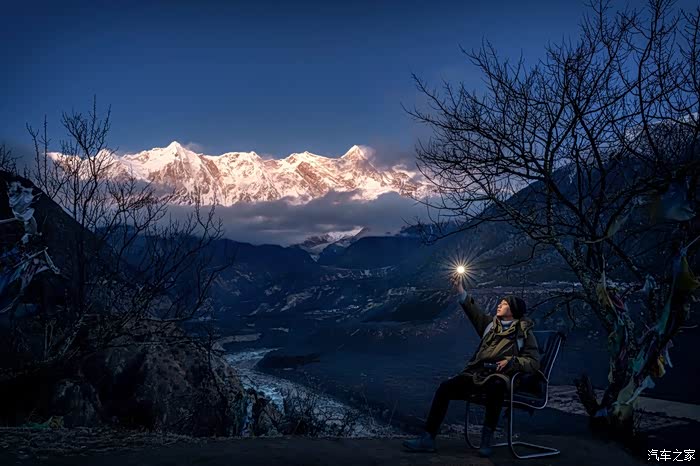据资料考证,南迦巴瓦存于这世上已有7亿多年,他是整个喜马拉雅地区最早脱海成陆之地,所经历的沧海桑田、斗转星移,更非我们人类目前所知晓的范畴能及。撕开遮羞布以后,南迦巴瓦索性整夜都清晰雕刻,我想只有数十亿年的星辰划出的长长轨道,才能与之媲美。