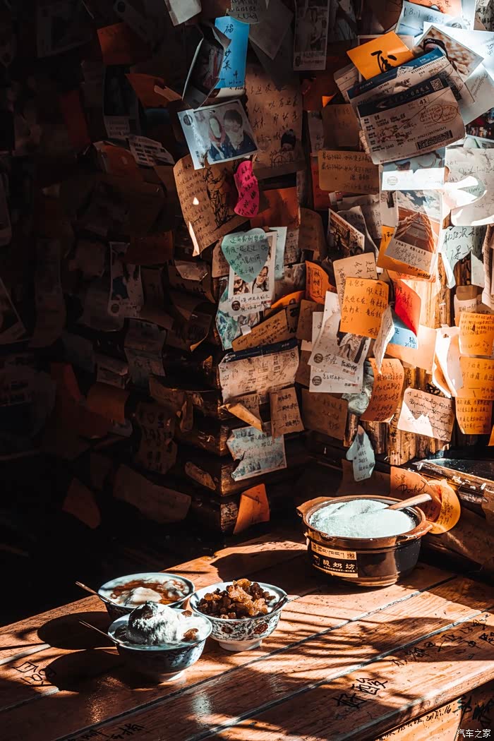 走出公园,在停车场有一家网红酸奶坊,他们一定也刚出布宫浮夸的华丽中走出来,来一碗冰激凌酸奶压压惊。酸奶坊的石墙上贴满了密密麻麻的照片和便利贴,每一位食客也在此留下了自己的心情故事。