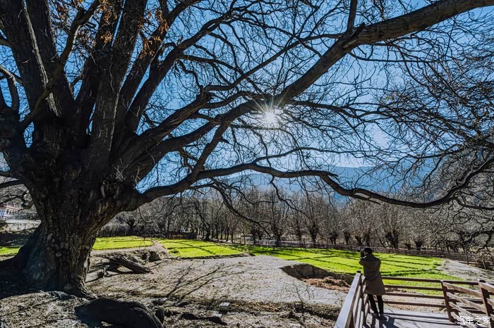 “小伙子,带点核桃走嘛,去年刚摘的。”千年核桃林,正对着冲康庄园。朗县种植核桃历史悠久,这也是历代喇嘛和嘎贡政府的贡品。冬日的林中只剩下张牙舞爪的枝丫,把头顶的天空织了一张网。网下就是漫长的岁月风雨赋予的生活气息,而神灵的眷顾远远不止这些。“来点吧!”提着一袋沉甸甸的核桃,回味千年故事,这才是冲康庄园古老的见证人。