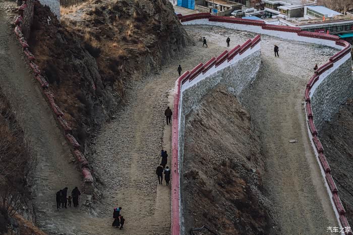 近距离的欣赏雍布拉康,需要步行上升100米的盘山台阶路才能到达。路其实并不算难走,几个蛇形的泥石路,便能到达雍布拉康宫殿脚下。