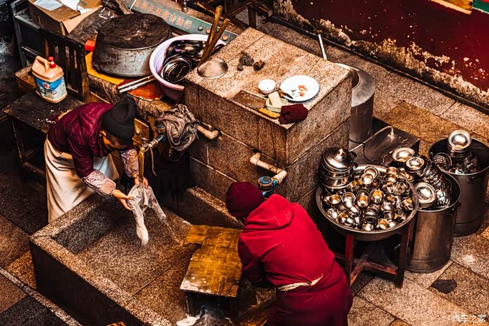 一杯热气腾腾的油茶,一块脸大的馕饼,一晚香喷喷的牛肉汤,这便是一顿典型的藏式午餐。人们围着一团柴火,有说有笑,便也忘记了屋外的严寒。
