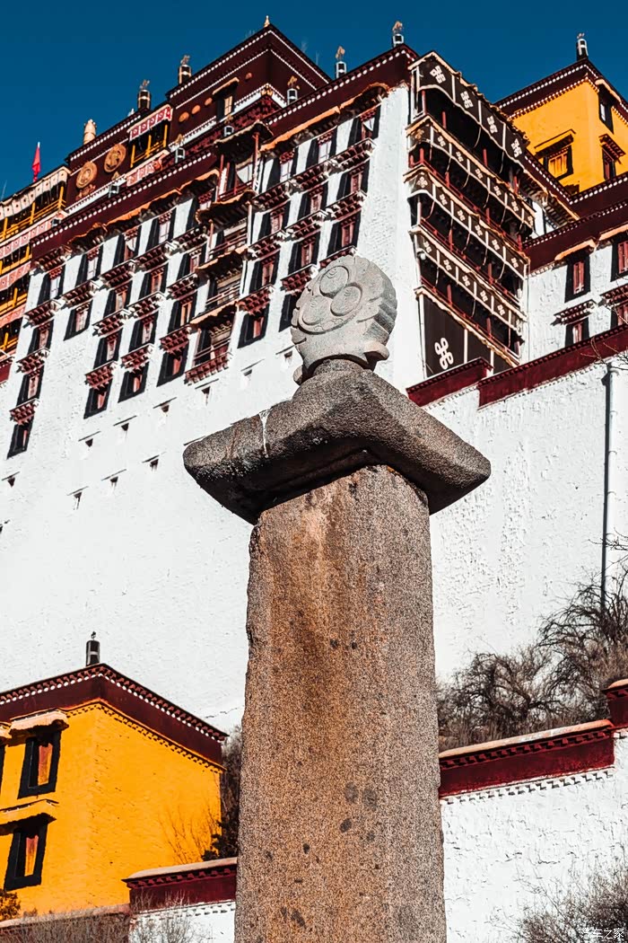 由张艺谋导演,破千场演出的“文成公主实景剧”是旅游旺季拉萨游客最爱的项目之一。冬日会闭馆,来年4月20——10月30日会从新开放,这也算是冬游西藏的一点小遗憾。不过剧场外的平台倒不失为拍摄布达拉宫倒影的绝佳机位。蓝调的远山和金色的布宫有了强烈的对比。威严如布宫在天地间,也不过是“寄蜉蝣于天地,渺沧海之一粟。”