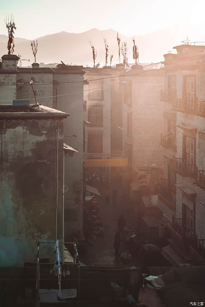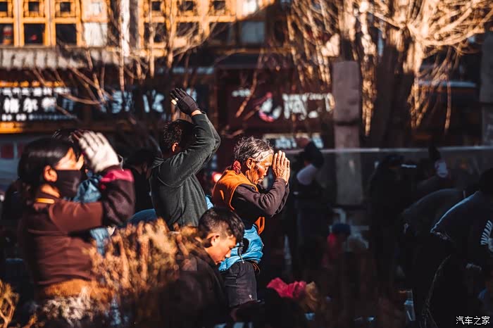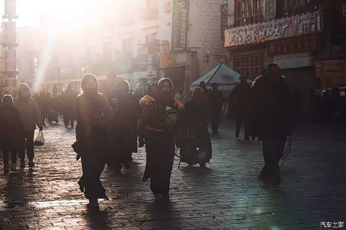 第二日清晨,一早我便拿着相机出门,天微亮,磕长头的虔诚信徒已经沿着八廓街留下匍匐大地的身影,转街的人川流不息,迎着经幡随风而动,阳光在香火的烟雾中翻腾,寻找着穿过人群的丁达尔光线。