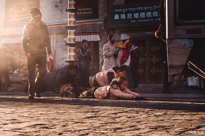 虽然现在的商业文化已经渗透到雪域高原,但藏民虔诚的宗教信仰还是让人感佩。无论是凌晨还是深夜,总有藏民就开始围绕大昭寺虔的诵经、转经筒。更有一路从其它藏区磕长头到此虔诚之人,有的是几岁的孩子,有的是白发苍苍的老人,无关年龄,只在乎心中的信仰与坚守。