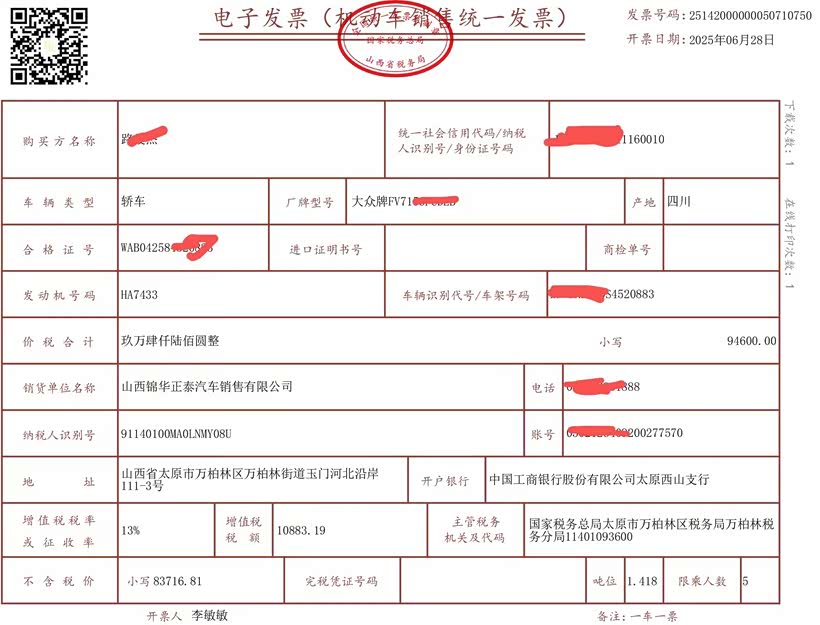提车过程:六月下旬去了4s店正好赶上有活动力度,跟销售从上午磨到了下午,要了一系列的优惠,裸车价谈到了9.4w,购置税费用8300左右,保险4300,上牌费用500,落地价格大概为10.8左右,我是贷款的所以加上利息又高一些。