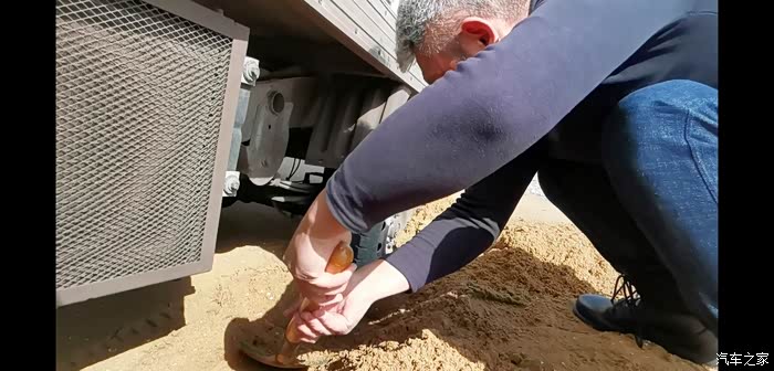 保镖非要尝试一下祥菱的越野能力,来到一个渔场,征得看门大爷的同意,非常认真的把车倒进了海边沙土地里,成功陷车!