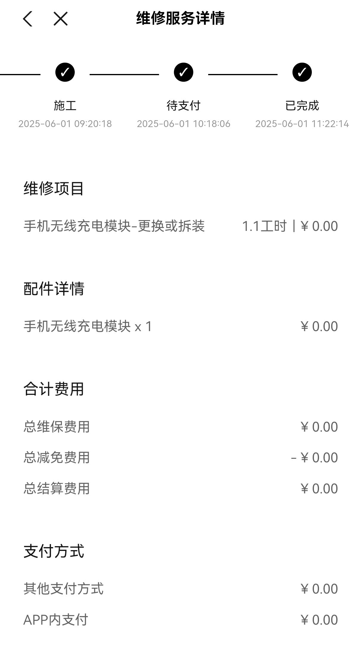 此次保养因为是首保,更换零部件尚处于质保期,所以未产生实际费用。当然,现在的新能源均有自主App,平时发发帖做做活动也可以赚取积分,小鹏的积分可以直接抵消保养费用,还是蛮划算的。