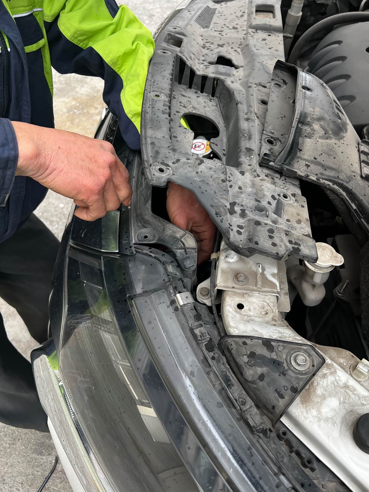 拿到修理厂师傅这里来更换,如果是自己更换是比较麻烦的,因为我们没有专业的工具,需要撬开发动机舱里面还有一层护板隔着的,需要用专用的工具,撬开上面的螺丝。