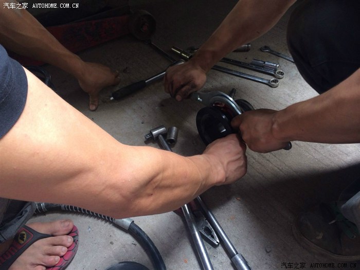先到了朋友那边,想先把轮毂轮胎装上;但是极度不争气的装胎机,装着装着就坏了!