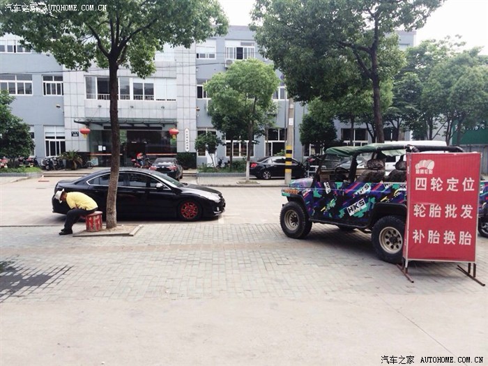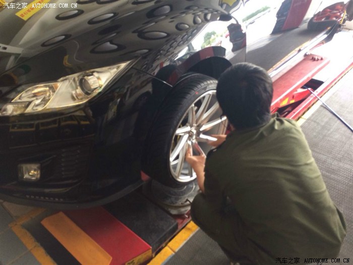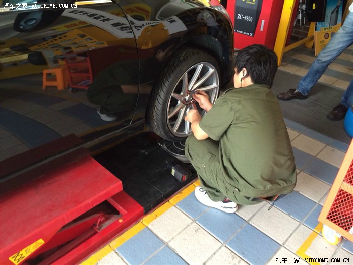 朋友让我过两天来安装,因为我不想带着大轮毂大轮胎再跑一趟,所以朋友就推荐我到附近的卡马特去安装。那边的设备挺完善,但是员工的技术不咋滴;而且服务态度也不咋滴,有点爱理不理的,幸好老板态度很好,所以就忍了。