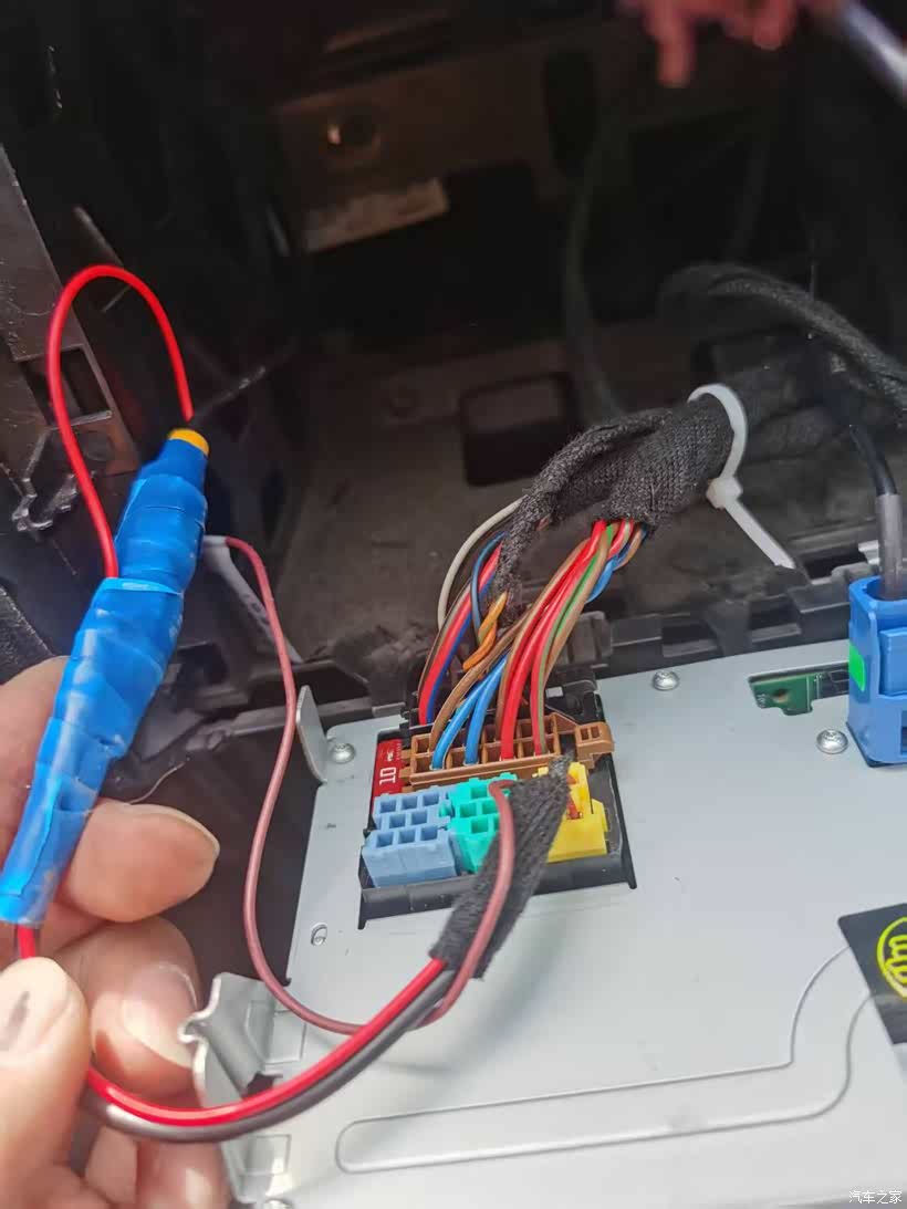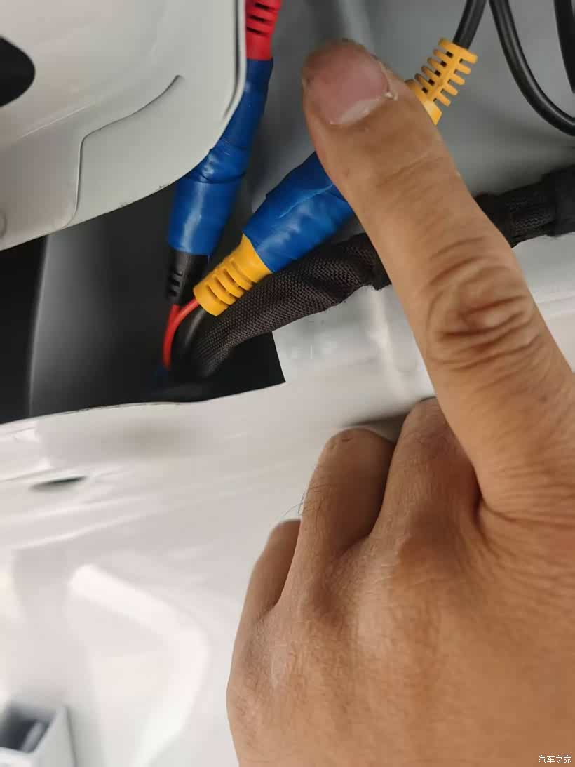 摄像头插头包胶布,安装倒车摄像头具体就不说了,太简单了,网上也很多教程,倒车灯的零火线别接错就没问题
