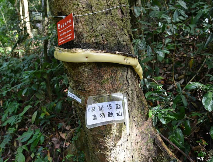 好多树木上都有科研设施的标识。