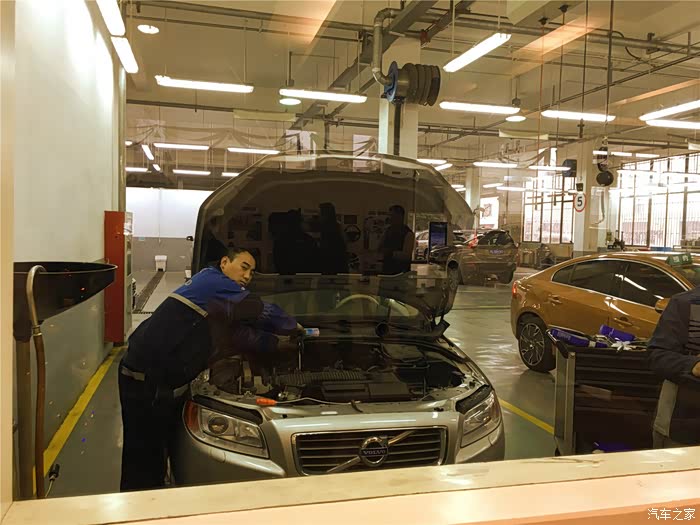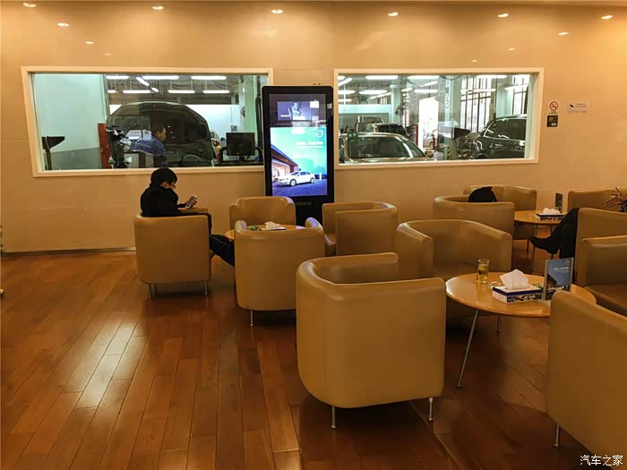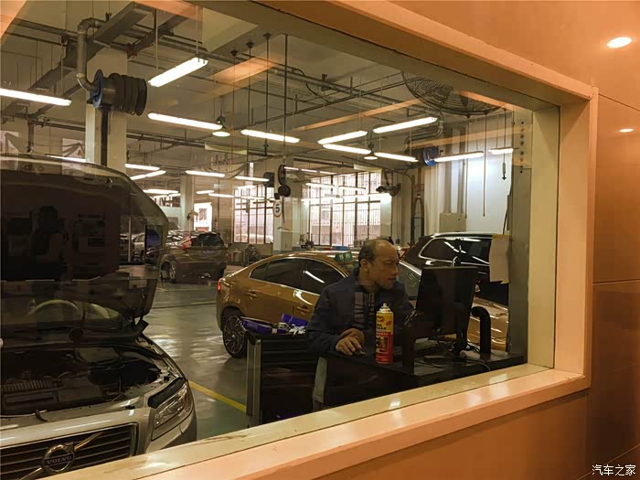 进店熟门熟路,找到售后填完单子暂别我的XC60,这里给大家扫个盲,本来是想进到车间拍几张照片的,可沃尔沃的车间车主是不能进的,除非在保养过程中技师发现了你车哪里出了问题会让售后通知你,比如轮胎内侧鼓包之类的让你更换零部件,如果你有异议的话可以让售后陪同一起进车间,一般情况下你只能隔着一块面积挺大的透明玻璃看到车间一角,个人感觉这种做法利弊各半。