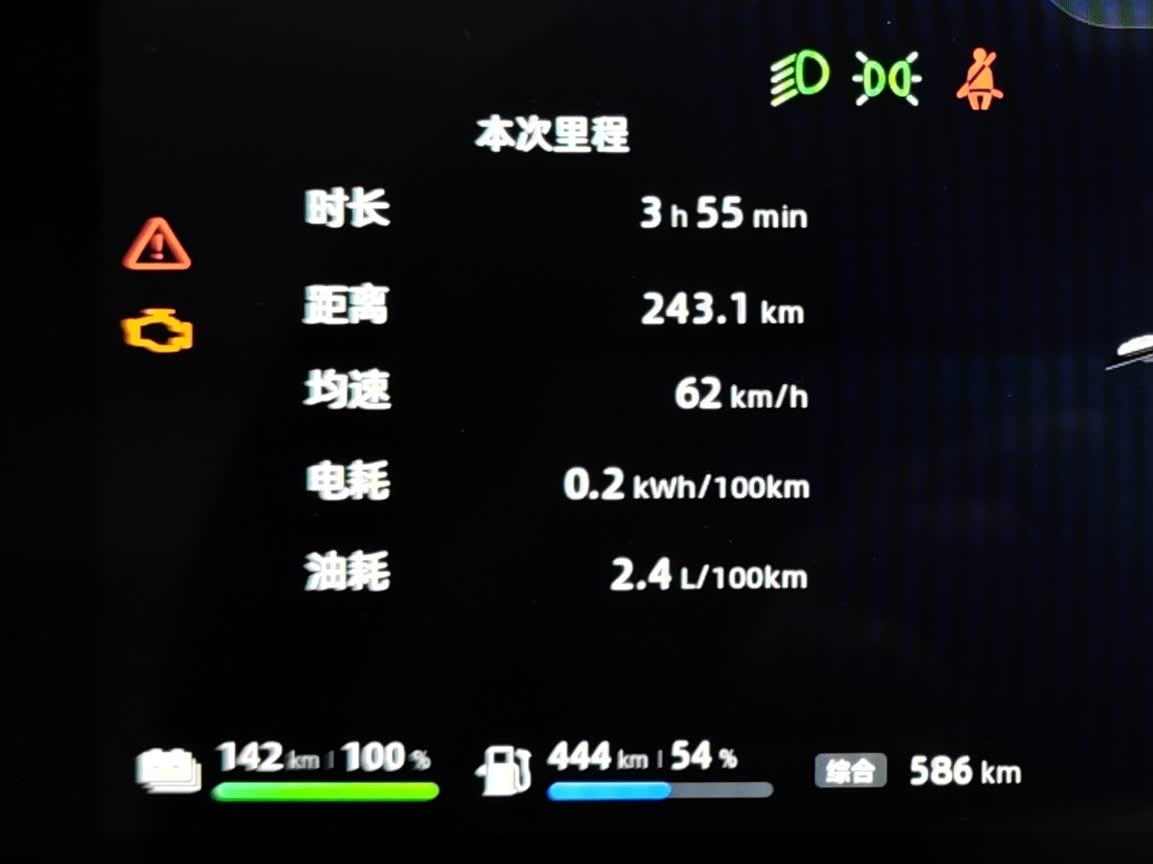 我的蓝电E5已累计用油行驶 1871公里,当前油量还能跑 444公里,预计本箱油总续航可达:1871 + 444 = 2315公里