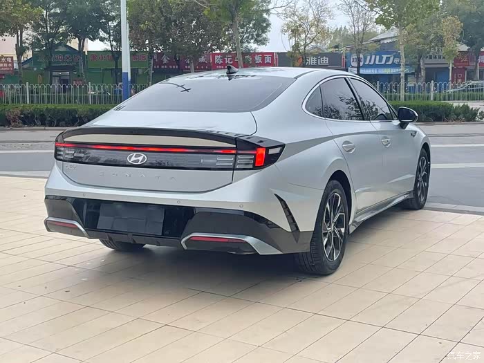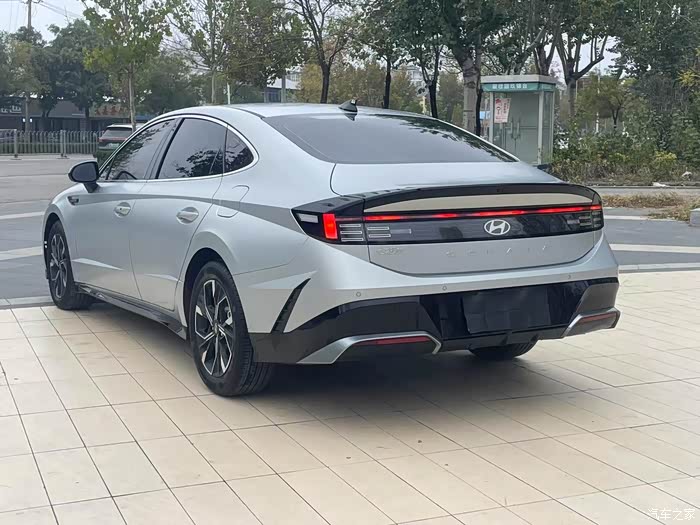 车尾部分,贯穿式的尾灯点亮后,内部构造新颖别致,与车头灯组形成了巧妙呼应。这种设计不仅提升了车辆的辨识度,更彰显了设计师的用心良苦。这种强烈的立体感和未来感,让我对第十一代索纳塔的外观设计赞不绝口。