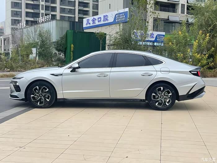 近距离接触第十一代索纳塔,它的未来感和运动气质令人眼前一亮。优雅而动感的车身线条在延续经典元素的同时,又融入了更多时尚与精致的细节。这种设计上的传承与创新,让我在熟悉中感受到全新的魅力。例如,日行灯的设计犹如一道横贯车头的璀璨光线,格外耀眼,而全新家族化的前脸则在细节上展现出更为细腻的质感,与兄弟车型伊兰特Nline相比,第十一代索纳塔显得更加舒展大气。
