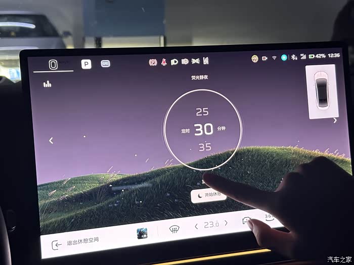 进入车内,可以感受到天工05在内饰设计上的用心。车内用料扎实,整体做工水平在同级别车型中处于优秀水准。配色成熟且富有科技感,提供了玄静灰/赭石褐、玄静灰/仙云紫、玄静灰/羽白灰、玄静灰/浮光棕四款配色选择,满足不同消费者的个性化需求。座椅包裹性超强,提供了良好的乘坐舒适性。主/副驾座椅均配备头枕软垫,副驾座椅还带有腿托功能,进一步提升了乘坐体验。