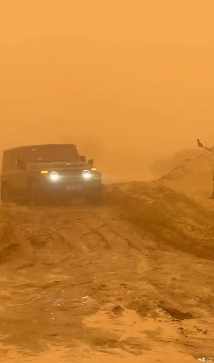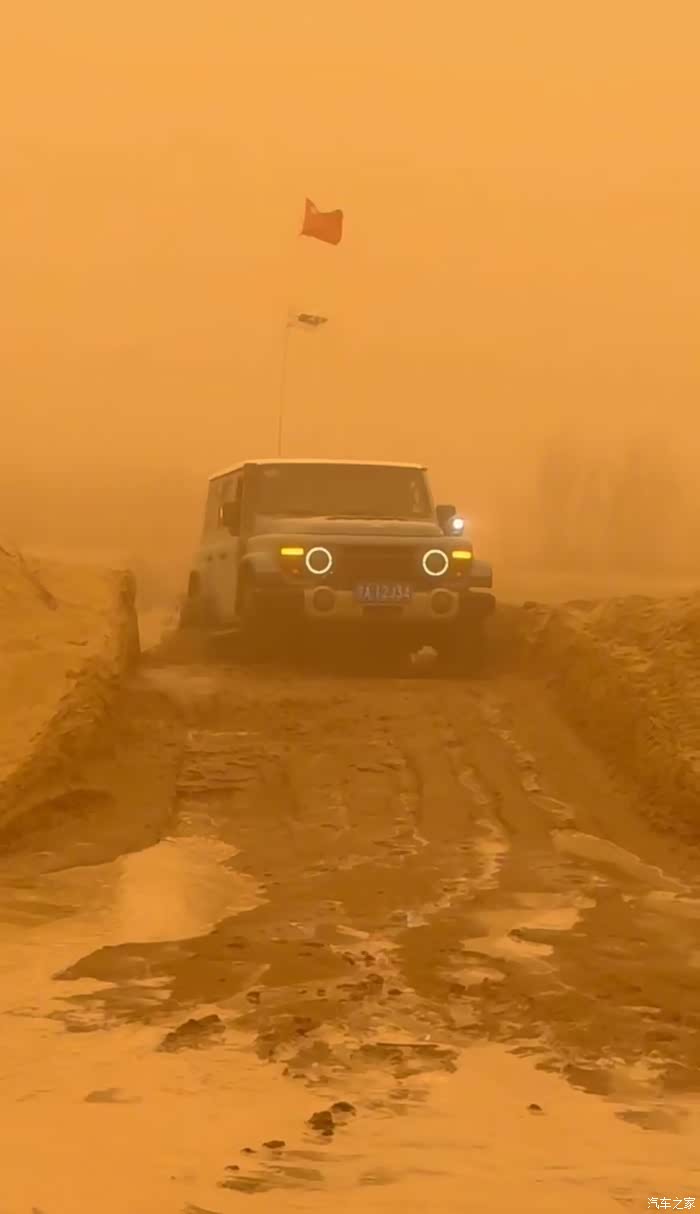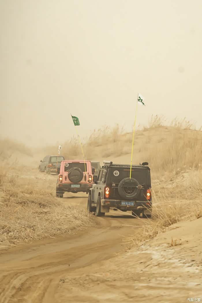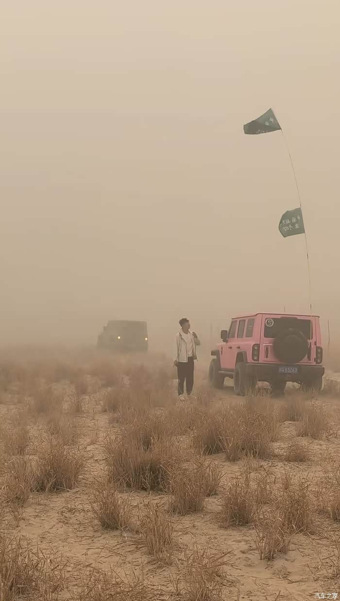 渡河以后,由于大家都没有渡河的经验,停车检查一下车辆状态,此时的风沙稍微小一点。