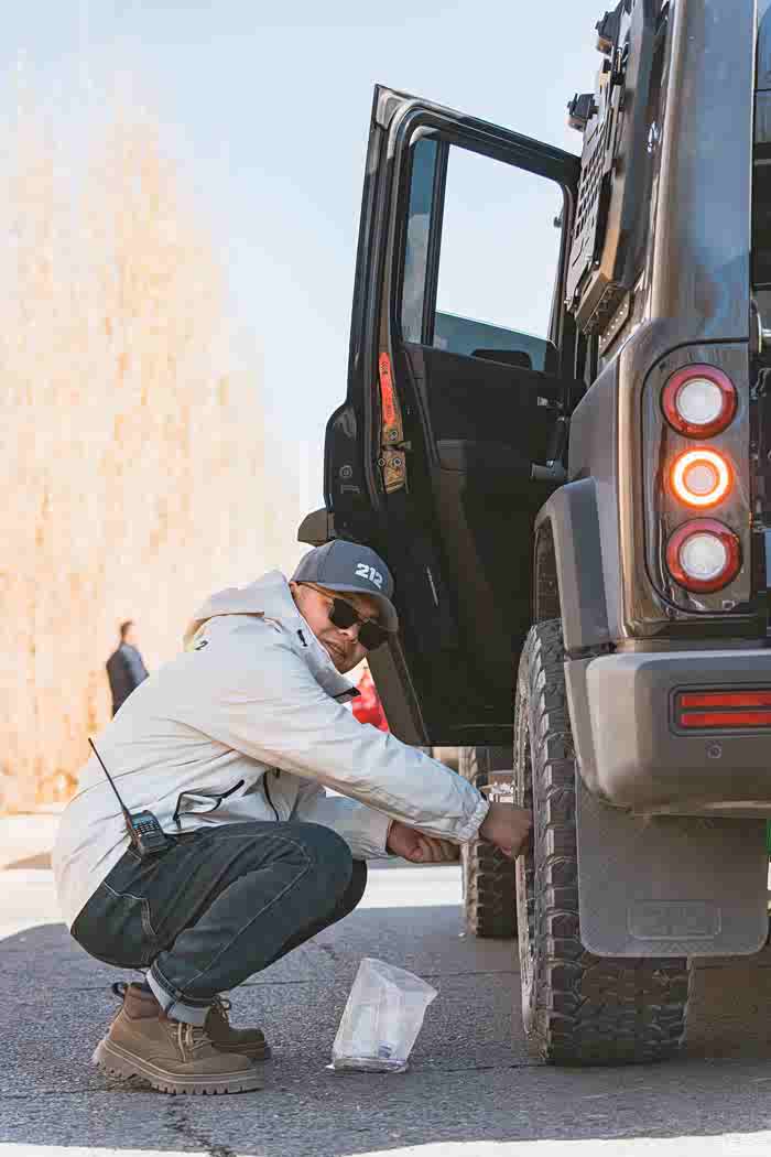 因为剩下的路段都是在沙漠中进行,所以我们选择到达新村给T01的轮胎放气,在沙漠中行驶一般胎压放至1.0-1.3左右就OK了。