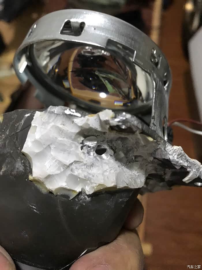 还不小心把Q5透镜边缘给钻穿孔了,我还试了一下灯光,居然毫无影响哈哈,以后改到电车上去