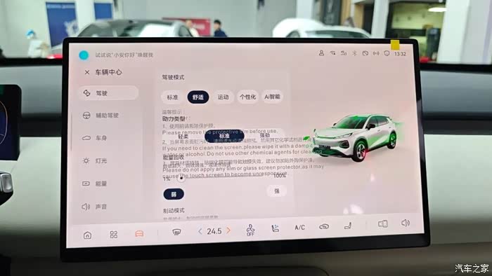 换我开了一圈,悬架的整体感受和启源A06还是明显有区别的。相对来说启源Q05的悬架调得比A06更软一点点,但不会上下乱晃,也没有拉不住的感觉,属于比较有韧性的那类。虽然不如MG4那么灵动,但作为一台10万级别的SUV来说,这样的悬架表现我是满意的(更何况试驾车还不是顶配,少了一套FSD可调阻尼悬架)。在运动模式下,动力踏板的响应和舒适模式有明显区别,轻轻一点就能提速,想找到自己最喜欢的驾驶感受,可以从“标准、舒适、运动、个性化和AI智能”五种驾驶模式里选,驾驶模式标注这点做的比A06更合理,共有同样支持对制动踏板、转向助力以及动能回收的无极调节。
