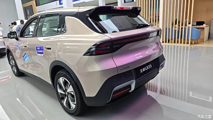 侧面的主要槽点有两个:一个是充电口设计在左前翼子板位置,这是个老生常谈的问题。并不是说完全不能接受,而是如果非要这么设计就得配上带车头泊入的自动泊车功能。好消息是,这次启源Q05就带这个功能;坏消息是,自动泊车只有带激光雷达的顶配才有。另一个问题是这台车全系没有后排隐私玻璃。