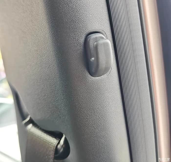 再然后是塑料件,这也是我在体验A06的时候重点吐槽过的,尤其是空调出风口的塑料拨片上面的“巴黎饰钉”质感极差,而这个问题在Q05上被完全解决了,不知道是换了金属材料还是改良了涂层,反正摸上去质感好多了。另一个被我吐槽的A06上的隐藏式塑料挂钩,在Q05上被换成了成本更低的普通黑色塑料挂钩,这其实也挺好,至少平时看着不显眼,用的时候也没有落差感。当然,挂钩附近的安全带高度不可调这个问题还是存在。