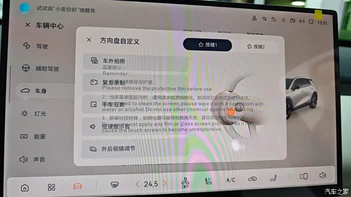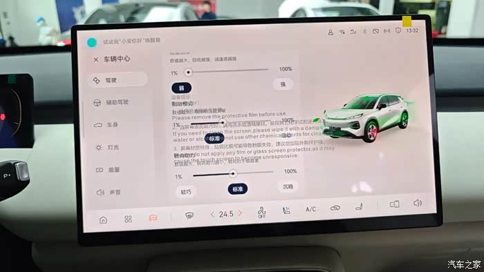 这四个按钮的质感也很不错,在类肤质的涂层加持下摸起来很舒服,按下去回弹力度也刚刚好。但是,我第一次按下去的时候稍微用力猛了一点点,不仅驾驶模式切换了,车子的喇叭也跟着响。