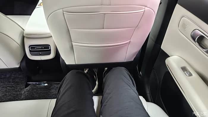 后排座椅坐感舒适,非常软乎,坐垫长度将将够拖住我的大腿,不像极狐T1为了让后排空间显得更大特意缩短坐垫长度。腿部空间和头部空间对于我这种1米7不到的人来说非常宽裕,两个前排座椅后面还有一堆储物袋方便临时放点东西。