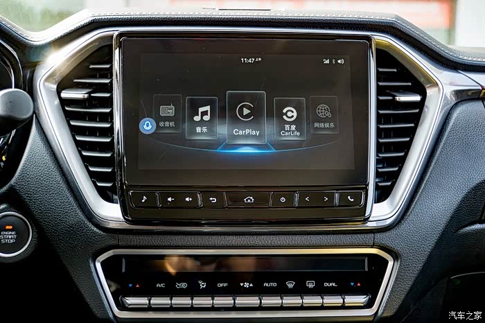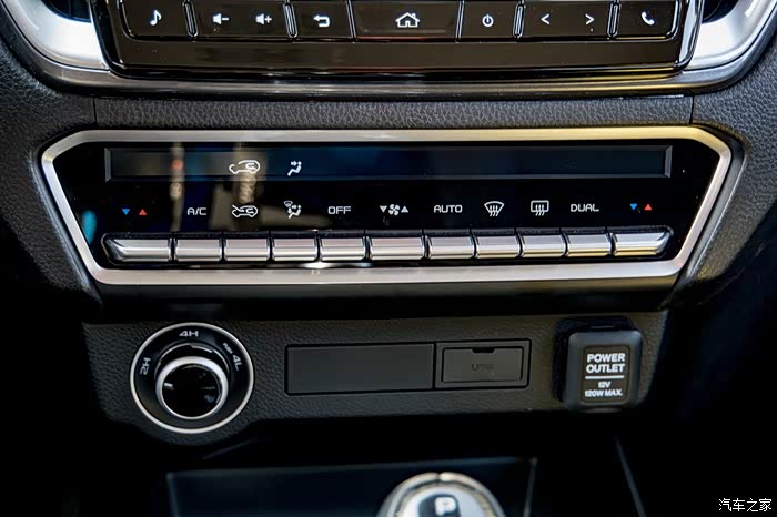 五十铃D-MAX自动挡车型全部配备了自动分区空调,中控屏下方的琴键式的功能键也是运动风格的一种展现。