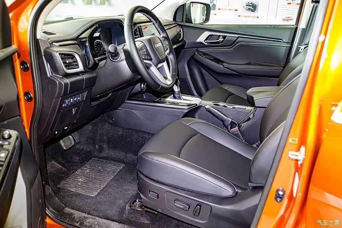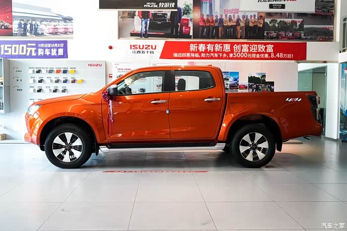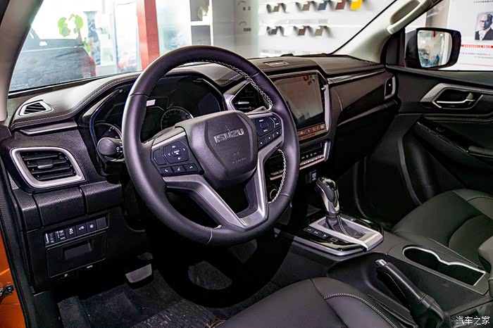 展厅里的这一辆是五十铃D-MAX的顶配车型,功能及配置上包含了自动双区空调、主、副驾座椅电动调节和加热、无钥匙启动、远程启动、自适应巡航、车道保持、并线辅助、盲区监测、防撞预警系统、360°环视影像等诸多高科技配置,在此就不一一例举了。