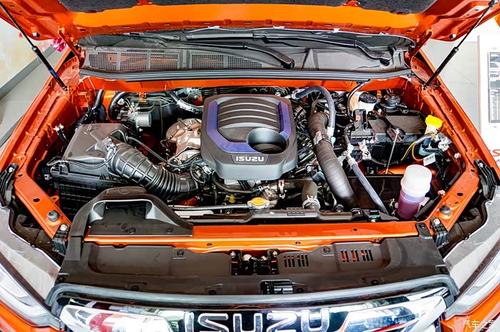 动力方面,经销售代表介绍,五十铃D-MAX搭载的原装劲蓝动力Ⅱ系统,是一款型号为RZ4E的1.9T柴油发动机,这台发动机采用高压共轨技术,搭载全新VGS可变截面涡轮增压技术,无论是动力表现还是可靠性都有不俗的表现。