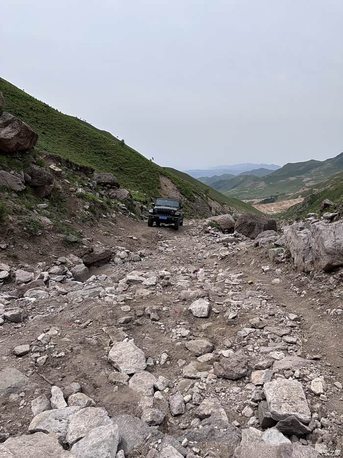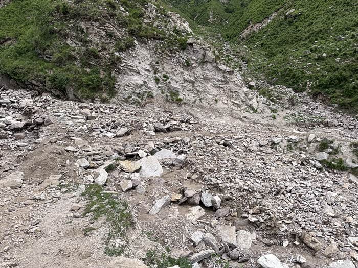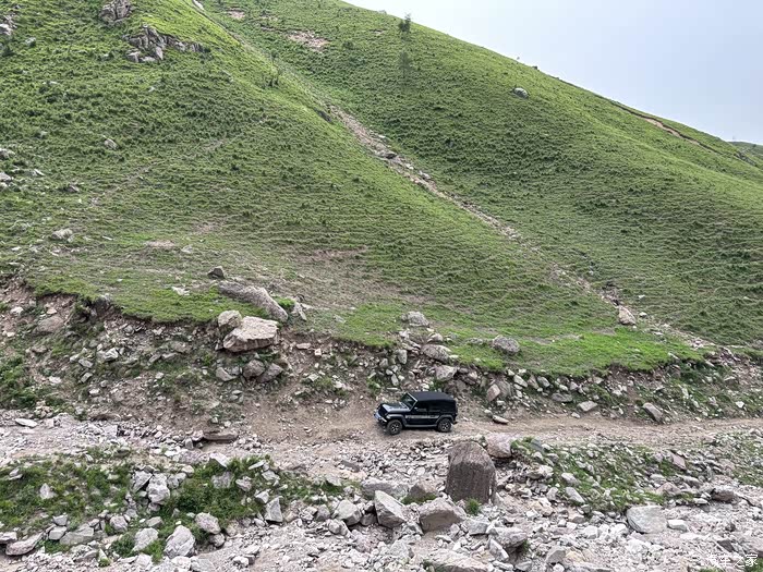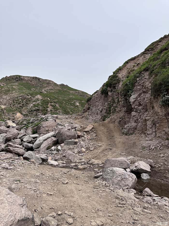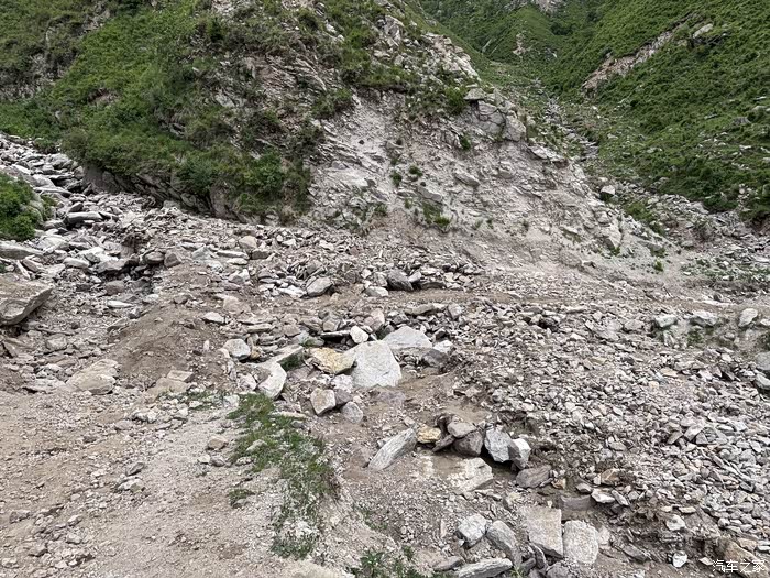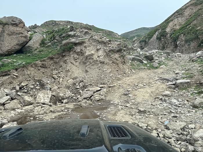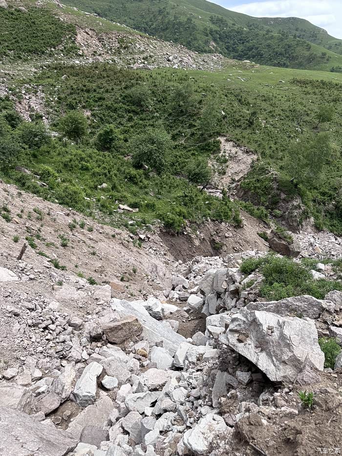 路遇一个骑越野摩托的少年,打探了前面路况,被告知前面不远处因为水毁,只剩一条摩托车通行宽度的路……对于四轮车来说断路,不能通行……往前走到断路处确认后死心……并眼见着天阴了上来,不犹豫了,折返……想到来时的路况,也是头疼
