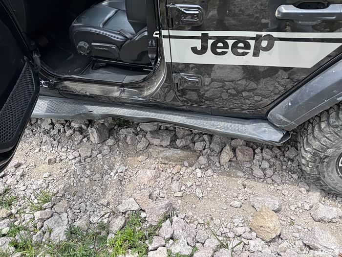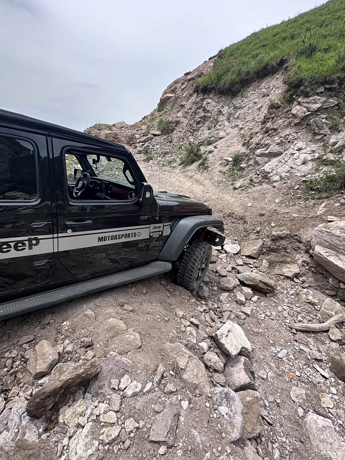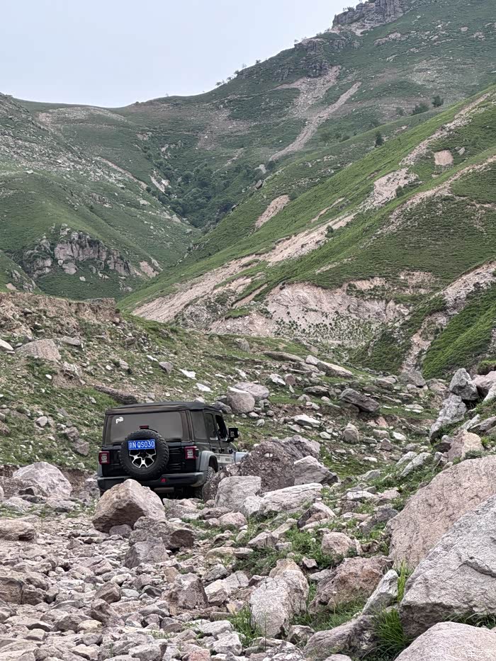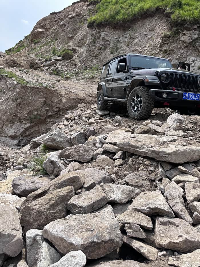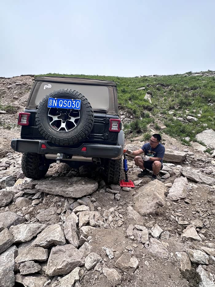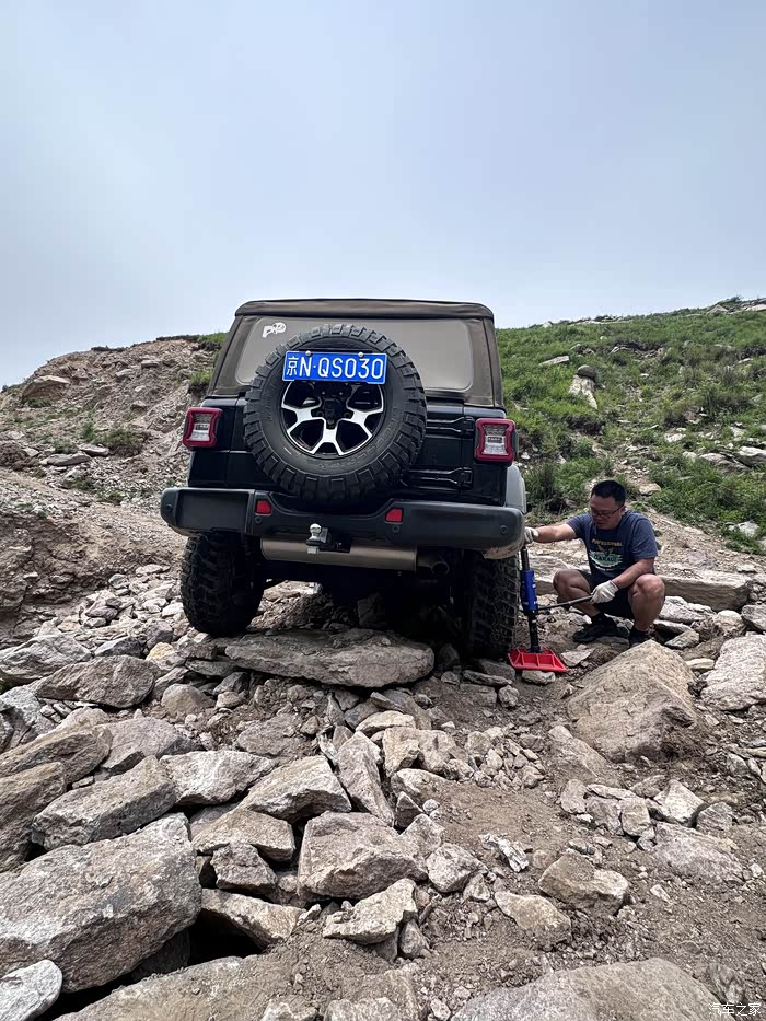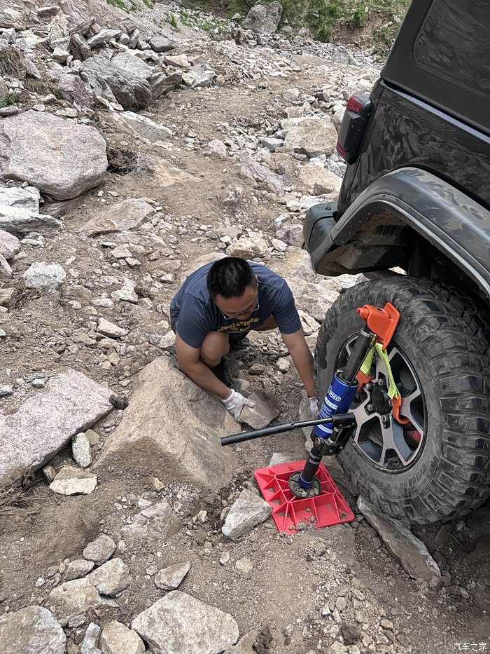 以防托底,尽量选择避开大石头,但……还是托了,垫轮胎、猴爬杆、推、给油冲……一顿操作,脱困