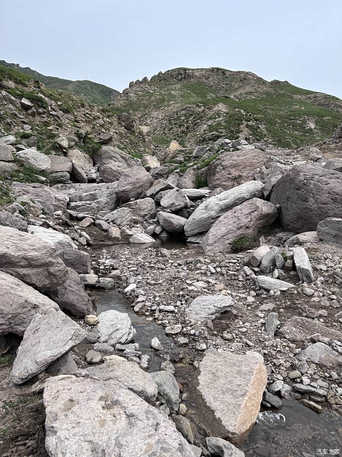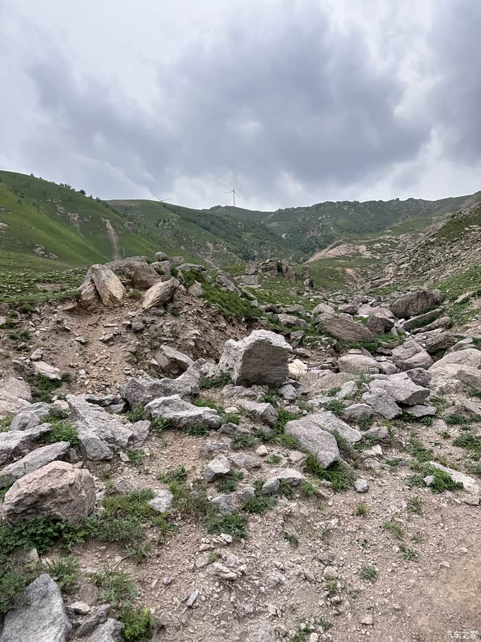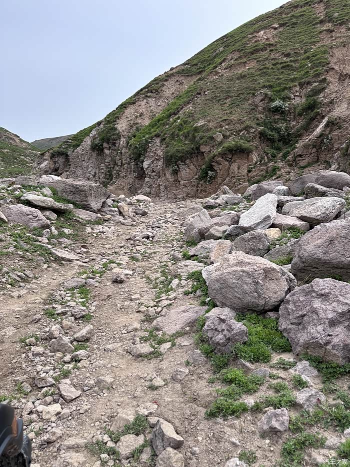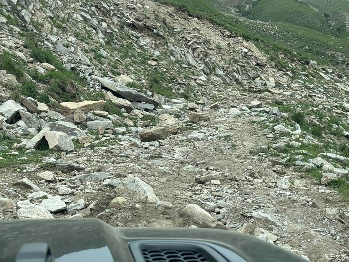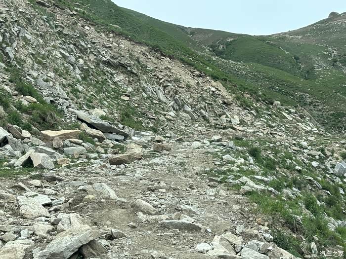 一个转弯过后,一条遍布在大石块间的土路告诉我们,这路“不简单”