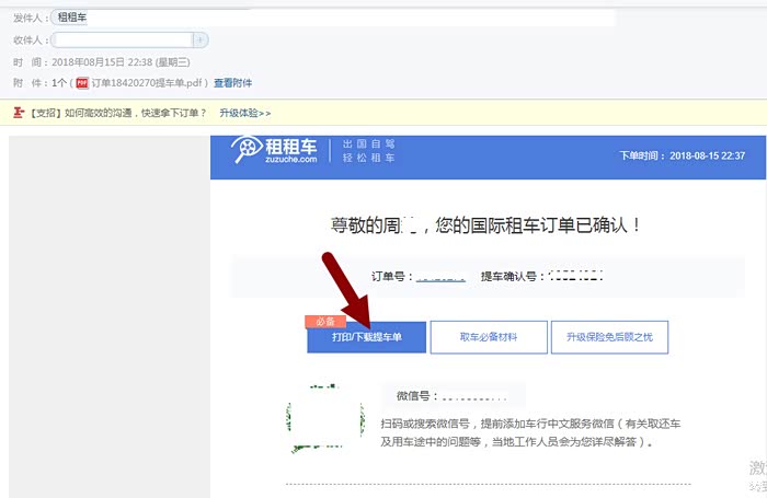 1、和在国内租车自驾一样,首先是租车公司的工作人员会查验你的国内驾照(原件)、租租车的翻译件(见下图)、以及租车预订单打印件(见下图)。