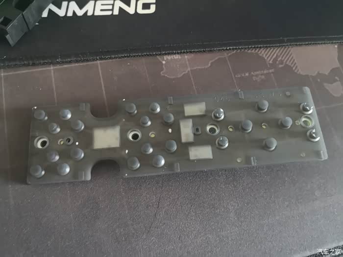 揭开橡胶片,电路板上的触点就出现了,目测很多位置已经氧化发黑,就是造成按键失灵的原因,解决也很简单,找个橡皮擦,每个触点都擦擦,立马就恢复了光泽,原路安装回去,通电测试,按键不灵的问题完美解决