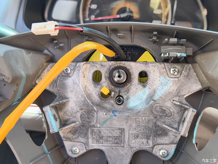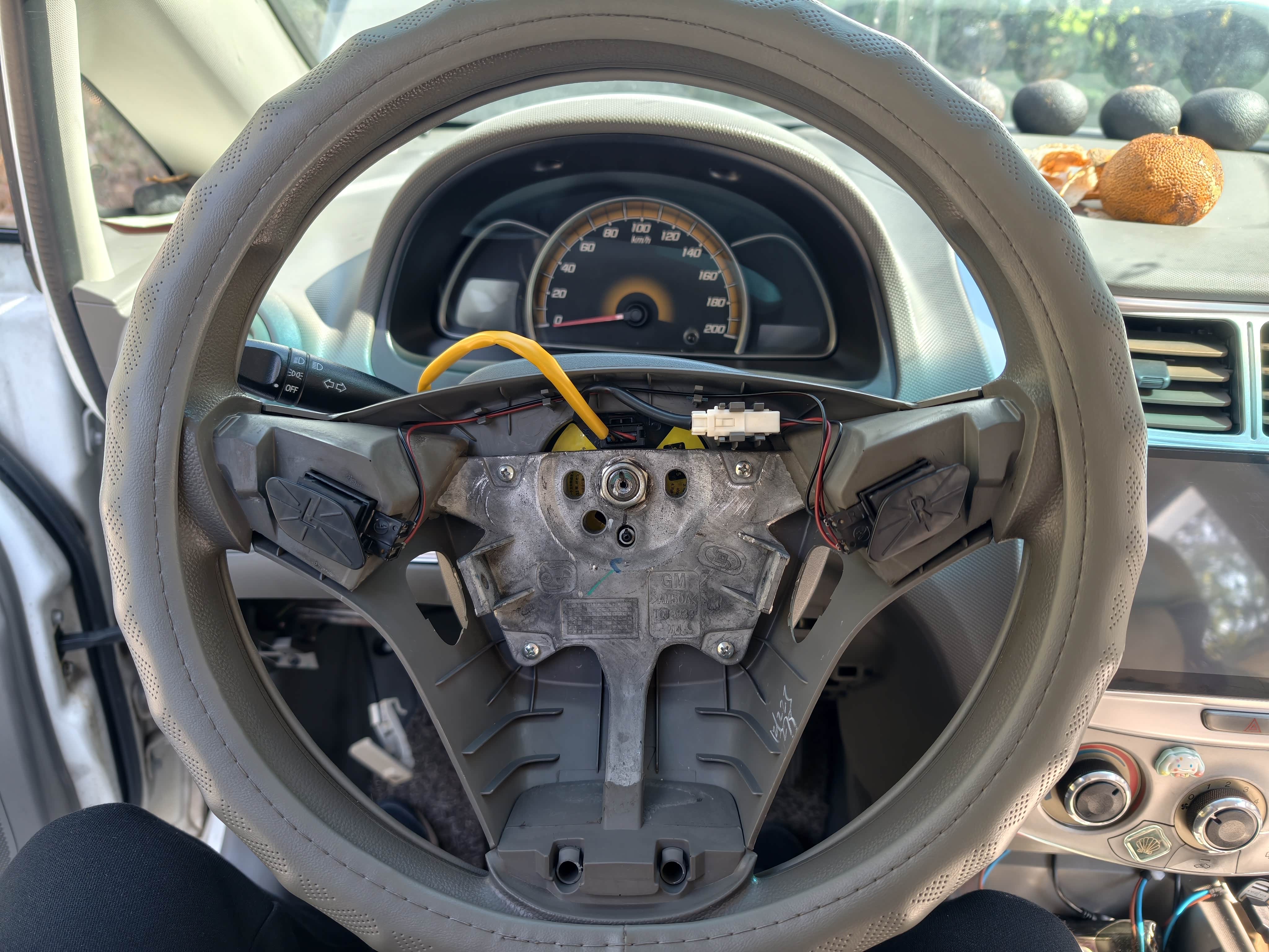 过了一段时间,喇叭完全不响,怎么按都不行,在排查的时候意外发现,反复扭动方向盘,喇叭有时候会响。心想,最麻烦的来了,多半是游丝有问题。研究查帖后,拆了方向盘盖,测量喇叭的红黑两线,红的通,黑的不通,喇叭按键是正常的,那百分百肯定是游丝断了。