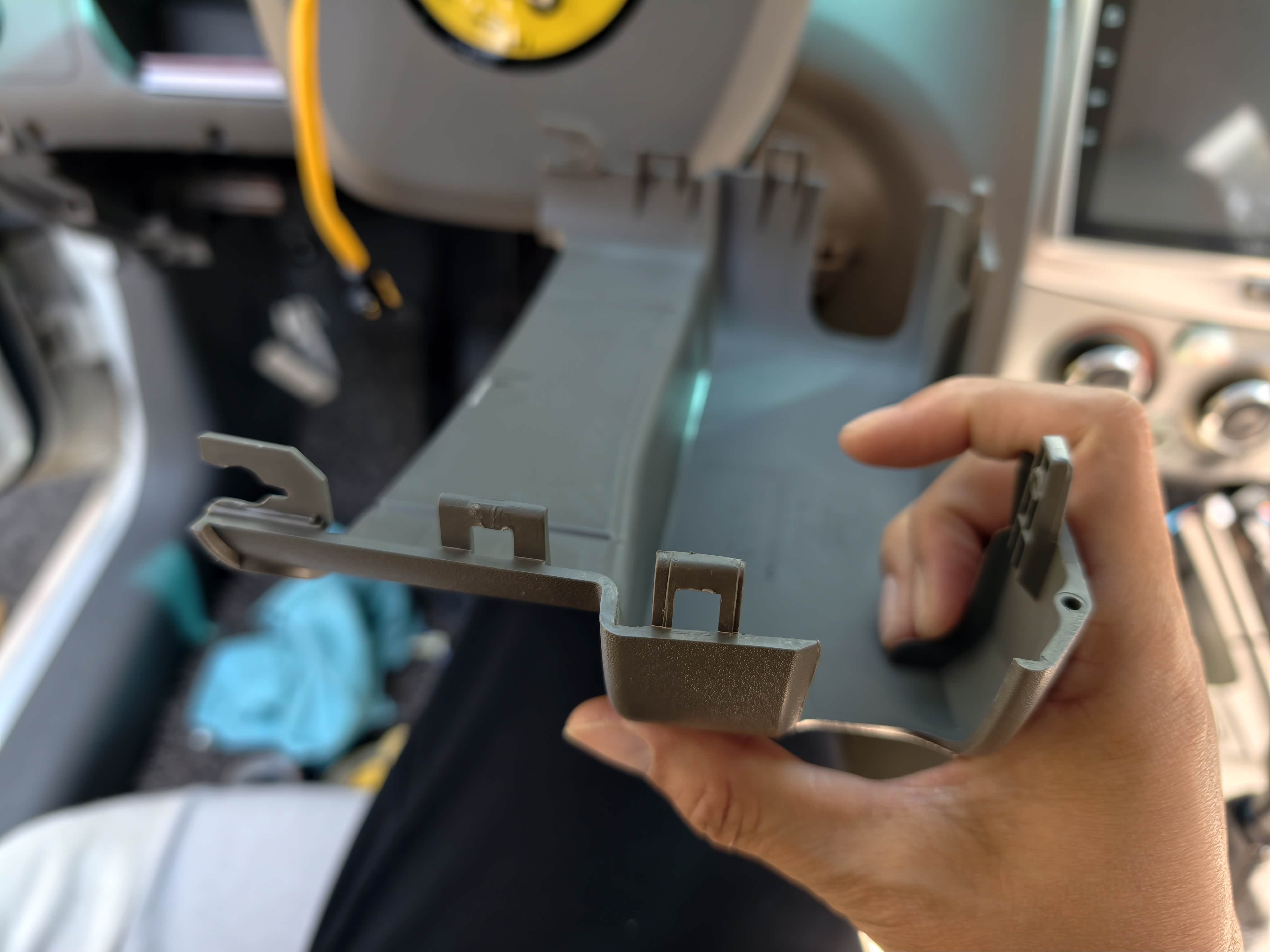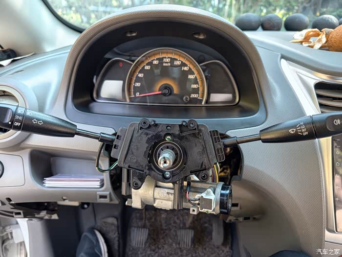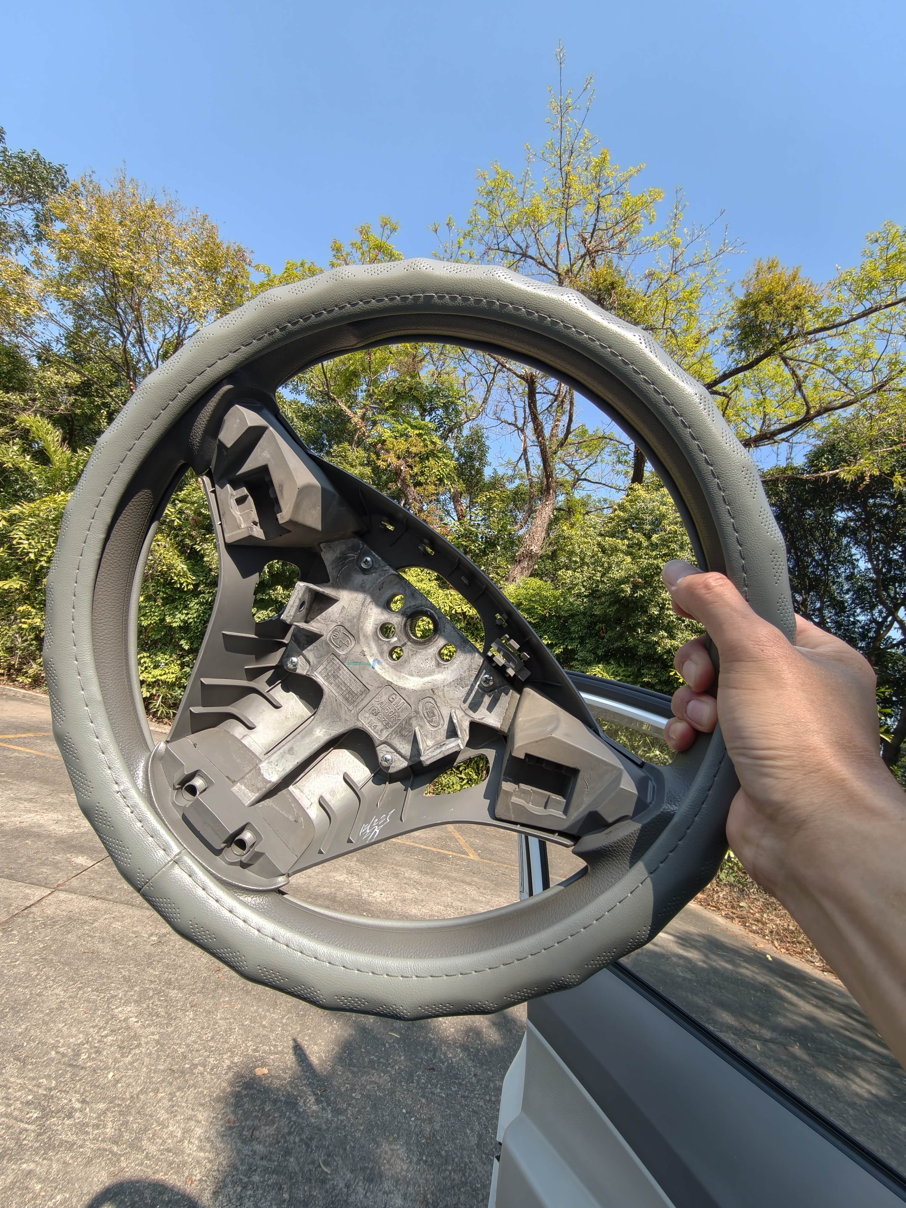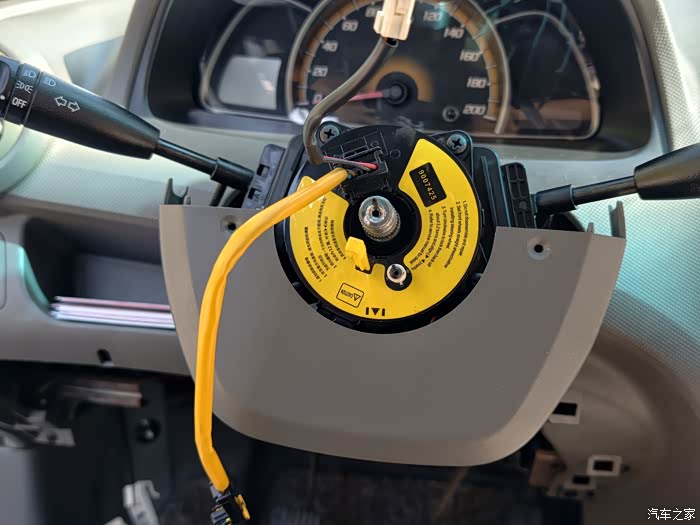 2,方向盘取出后,下面的塑料盖要慢慢取下来,有两处位置是直插进去的,别用蛮力,会断。