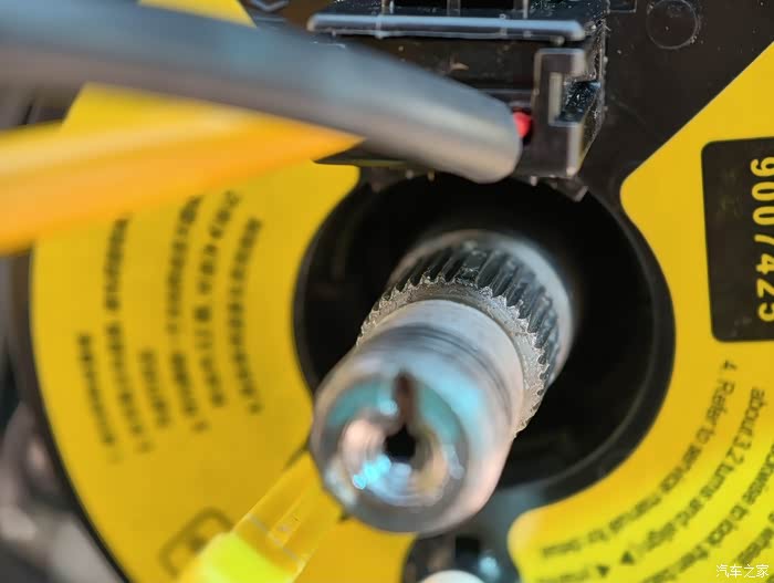 1、方向盘取出不用做任何的标记,因为接口位置有齿,有一处特别大的口,一个萝卜一个坑,绝对正中,不会装歪。