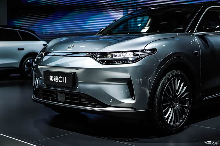 ▲看了两台轿车,不如看看SUV吧。来到零跑展台,能看到零跑C11外观造型上确实能够抓住不少年轻消费者的内心,略显圆润的车头采用了电动车常见的封闭式中网,前脸下半部分采用了方正的矩形元素,整个前脸看起来比较简洁、清爽。