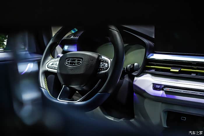 ▲车内布局倒是挺规整的,8英寸的悬浮式中控屏、7英寸的液晶仪表盘,外加平底造型的多功能方向盘、旋钮式档杆,尽可能地保障了车辆的易用性。仔细查看,能在中控台上看到绿色的装饰条,空调出风口还采用了一体式设计,增强了车内的整体性。
