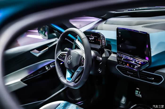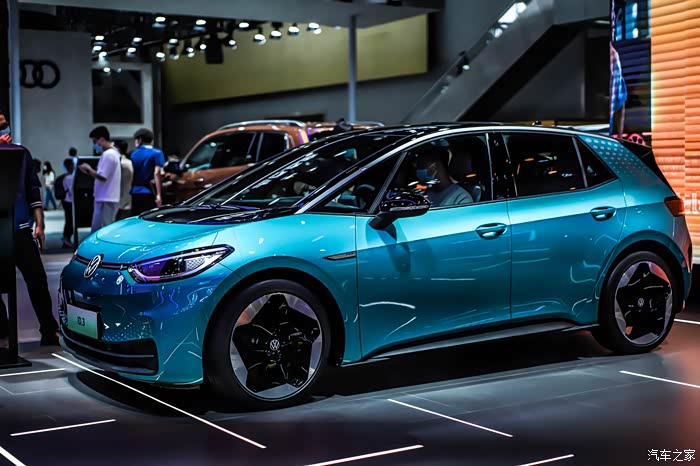▲继续来到大众展台看看ID.3,外观是呆萌的造型,封闭式的进气格栅算是新能源车型常见的样式,可发光的LED灯带和大众LOGO点亮之后很有科技味道。矩阵式大灯可以在不同的场景下发出相应灯语与车主进行互动,仪式感满满!下包围处运用了点阵式拉花处理,大大增加了车头的视觉美感。