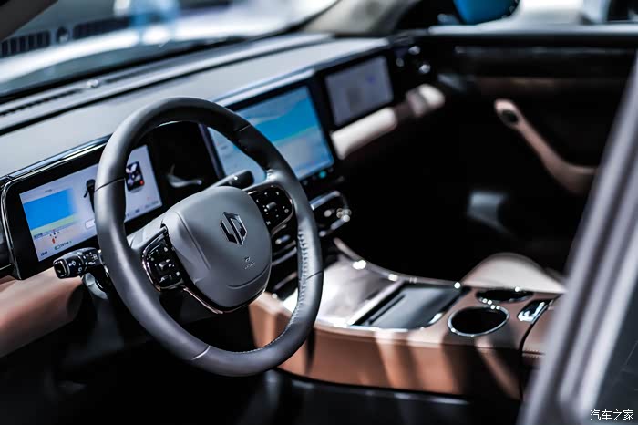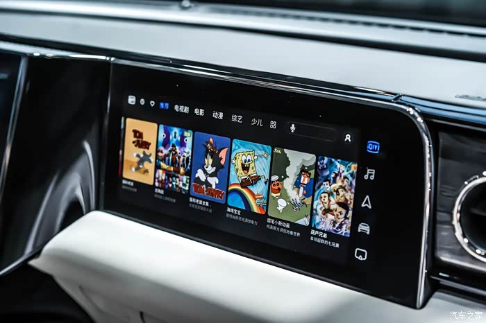 ▲最抢眼的是中控台上这三块大屏,大屏除了能各司其职之外,还支持内容共享功能,比如副驾驶侧这块10.25英寸的娱乐屏除了能播放电影、音乐之外,还可以显示与驾驶相关的信息,比如为司机设定导航目的地等。