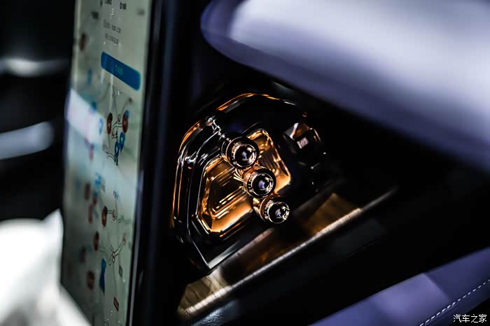 ▲位于前风挡两侧升降扬声器特别吸睛,当车辆通电时,它们会徐徐升起,非常有仪式感,另外底部背景灯光多色可调。