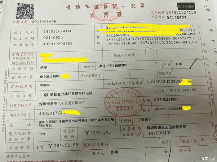 于是开始去4S店选车的行动了,首先杀去龙华最近的一个4S店,经过询问,优惠量不大,也没有什么东西送呢,最惹火的是提车还得等1-2个月呢,最后是否都不能完全的保证。接着去了梅林关,此4s店价格下不了,但是送的东西还可以,特别是包养有6次,不过恼火的还是没有现车,都得等2个月呢,果断离开。最后来到现在买车的这个店,有现车,很高兴,谈价格,谈赠品及保养这些,一切都是那么顺利呢,之后拿到牌,直接交尾款(同时招行贷款,因为有招行信用卡,审批当天就通过,提车前2天放款)。选好周末,叫上同事直接杀去店里提车,一切都是那么顺利。